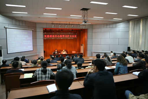 我校黨委理論中心組全體成員、中層干部、部分教授和教研室主任參加了會議。