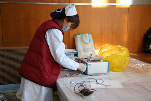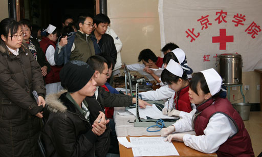 獻血前醫生詳細講解了獻血的注意事項,并對同學們進行血壓測量和血液檢驗。