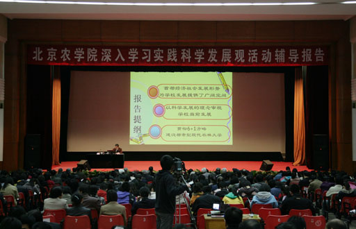 為引導(dǎo)廣大黨員干部圍繞當(dāng)前首都經(jīng)濟社會和高等教育發(fā)展形勢,結(jié)合學(xué)校第二次黨代會提出的“六大發(fā)展戰(zhàn)略”和“一個保障體系”,加強貫徹落實科學(xué)發(fā)展觀的自覺性和堅定性,提高推動學(xué)校科學(xué)發(fā)展的能力,4月2日,北京農(nóng)學(xué)院舉辦了學(xué)習(xí)實踐科學(xué)發(fā)展觀活動第三場專題輔導(dǎo)報告會。校長王有年作了題為《對當(dāng)前和今后一段時期學(xué)??茖W(xué)發(fā)展的認識和思考》專題報告。黨委副書記高喜軍主持報告會。