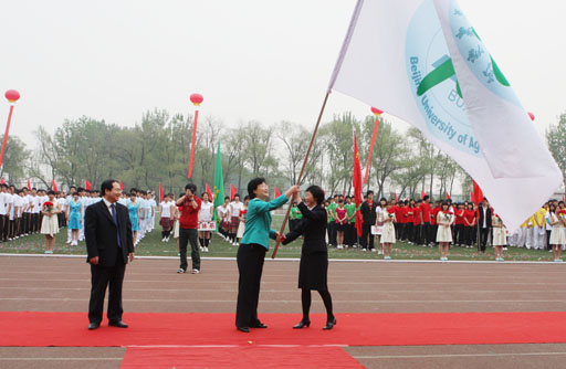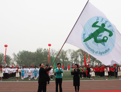 閉幕式結(jié)束之際,在會場上隆重舉行運動會會旗交接儀式。此次運動會承辦單位植物科學技術(shù)學院院長秦嶺將形為舞動的“農(nóng)”字會旗交予黨委書記王慧敏,我校下屆運動會承辦單位經(jīng)濟管理學院院長何忠偉接過會旗,揮舞會旗向全校師生示意。此后,每屆運動會承辦單位都將延續(xù)奧運精神,將舞動的“農(nóng)”字會旗與精神傳承下去。