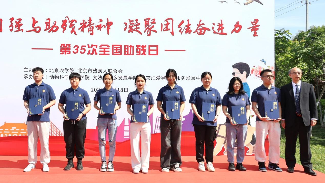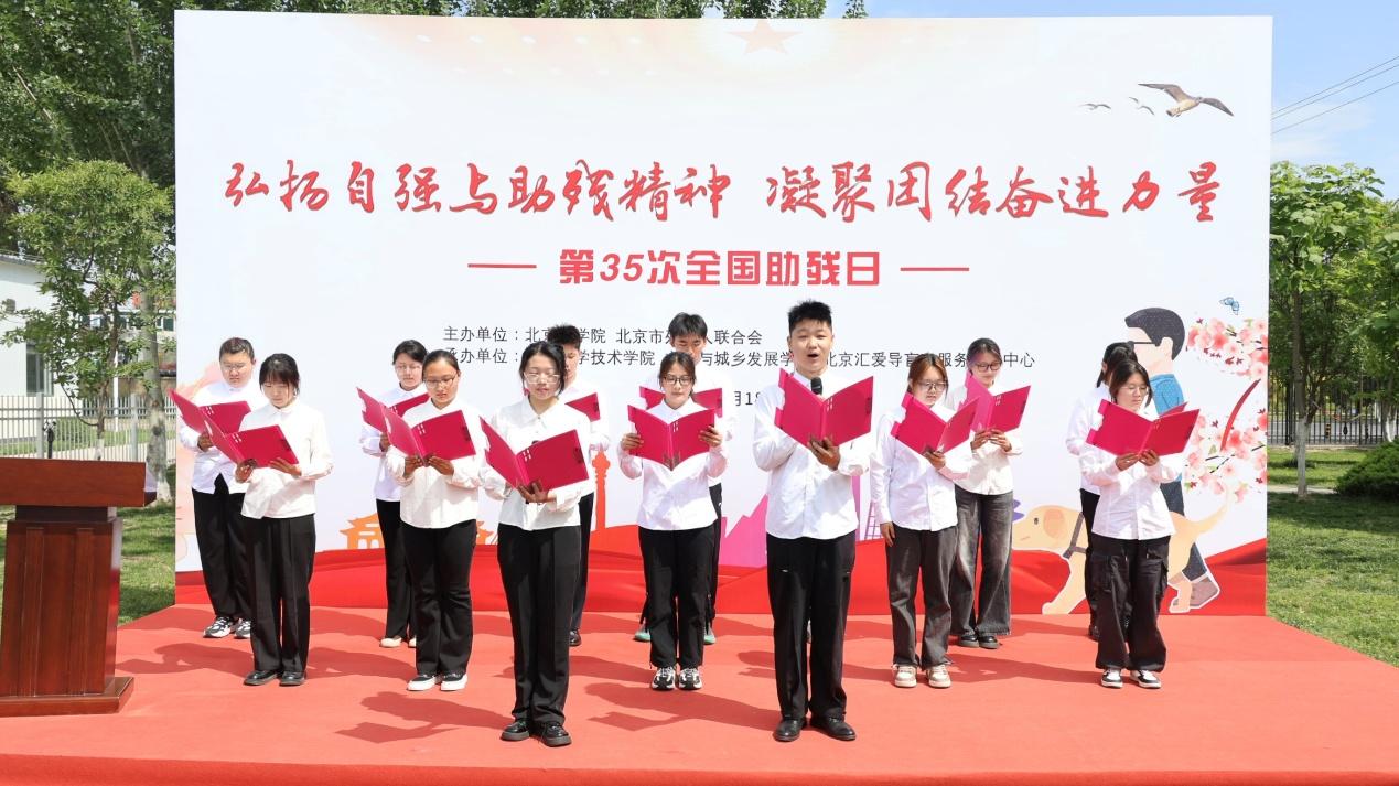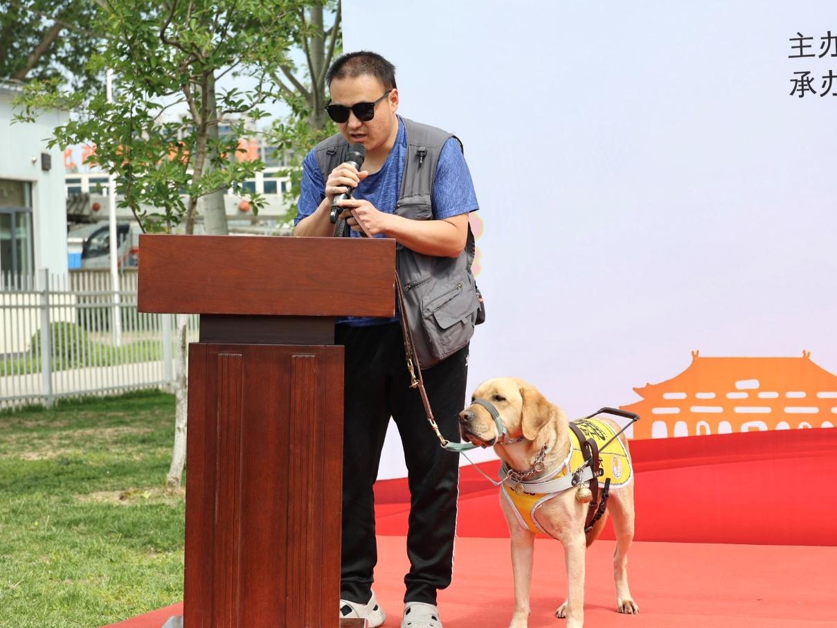 北京農學院學生代表宣讀倡議書,表示將以青春之名踐行社會責任,用專業之力傳遞文明之光,號召更多人加入關愛導盲犬、尊重視障群體、幫助殘疾人的行列,共同構筑有溫度、無障礙的社會環境。
