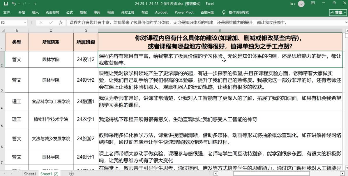 設計專業學生說:“課程內容既有趣又豐富,無論是知識體系的構建,還是思維能力的提升,都讓我收獲頗豐。”釀酒專業的學生表示,課程讓他對人工智能領域產生了更濃厚的興趣,將進一步探索。農學專業學生覺得課程生動直觀地讓他們感受到人工智能的神奇。會計專業的學生表示,課程學習之后她能更好地使用AI,提高了學習和工作效率。學生的認可,是對團隊付出的肯定,更是團隊育人目標實現的證明。