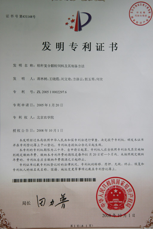 近日,我校動物科學技術系教師蔣林樹主持的北京市科技新星項目《秸稈復合顆粒飼料高效利用及產業化》課題組獲得具有北京農學院自主產權的國家發明專利一項。該項專利的發明為我國秸稈等非常規飼料資源開發及利用提供了有效的途徑。