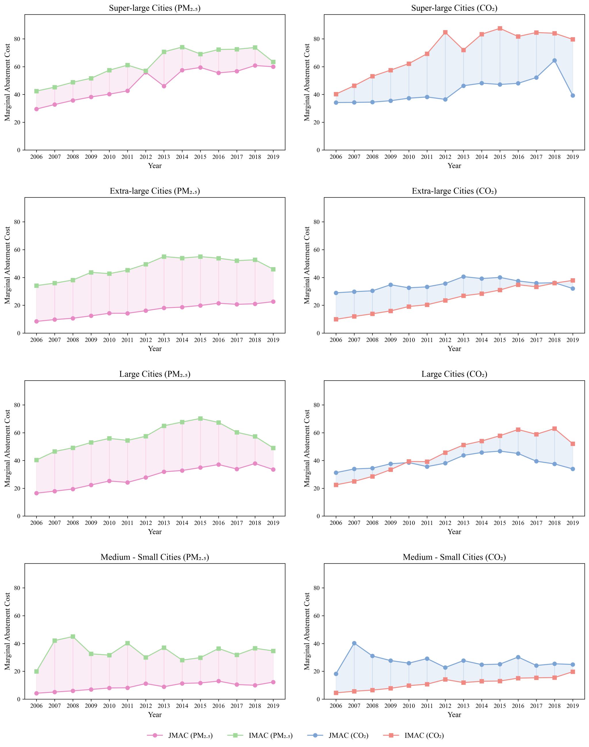 該研究發現,中國城市PM2.5與CO2的協同減排成本在時間上呈現出明顯的階段性變化趨勢,其中經濟發達地區如長三角、珠三角與成渝城市群的協同減排成本顯著高于其他區域。