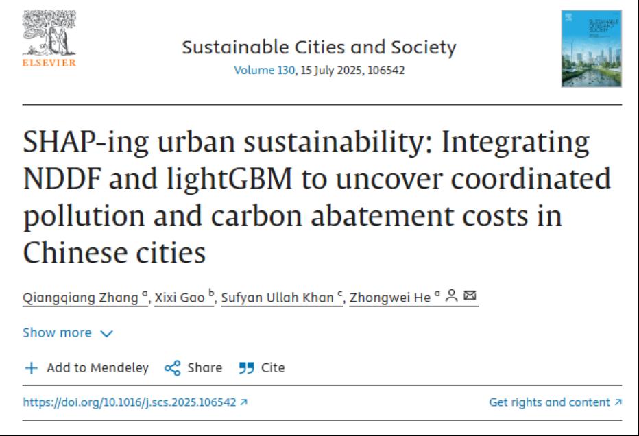 近日,我校經濟管理學院何忠偉教授團隊在Sustainable Cities and Society(中科院1區,IF=12.0)在線發表了題為“SHAP-ing urban sustainability: Integrating NDDF and lightGBM to uncover coordinated pollution and carbon abatement costs in Chinese cities”的研究論文,創新性地運用了融合非徑向方向性距離函數(NDDF)與LightGBM模型的綜合分析框架,輔以SHAP(Shapley加法解釋)方法,系統揭示了中國287個城市在2006—2019年期間污染與碳減排的協同成本及其影響機制。