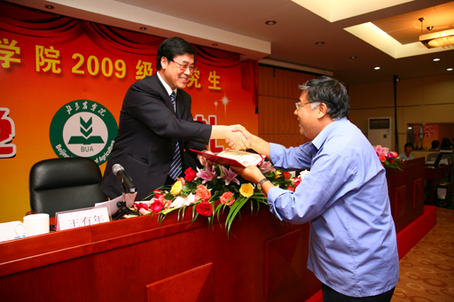 校長王有年發表了熱情洋溢的講話。他首先代表全校師生員工向163名研究生表示熱烈的歡迎和祝賀,向剛受聘為我校研究生教學督導、研究生導師及其他農科院的同仁們,表示衷心的感謝和親切的問候。