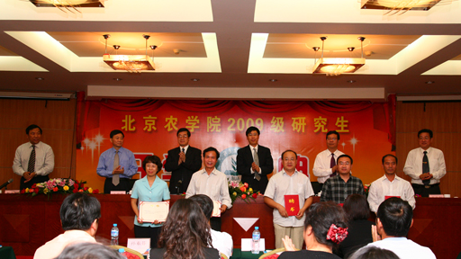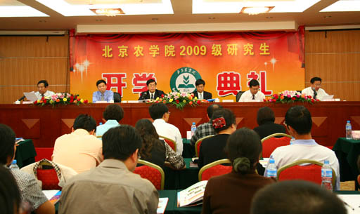 秋風送爽,金橘飄香,在喜迎新中國成立60周年之際,我校2009級研究生開學了。9月11日下午,2009級研究生開學典禮在北農科技培訓中心隆重召開。校長王有年、副校長杜曉林、姚允聰、紀委書記朱生利,北京市農林科學院院長李云伏、副院長王金洛、新聘任為我校研究生導師的市農科院專家、受聘的研究生教學督導、碩士研究生指導教師、相關部門領導出席典禮。開學典禮由杜曉林副校長主持。