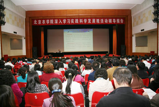 為了增強廣大黨員對首都經濟社會發展總體思路和區縣功能定位的了解,找準學校在建設“人文北京、科技北京、綠色北京”及社會主義新農村建設的服務定位。4月14日下午,深入學習實踐科學發展觀活動第五場輔導報告會在禮堂舉行。北京市發改委區縣經濟處長姚忠陽為我校廣大黨員干部作了題為《進一步落實區縣功能定位,加快建設人文北京、科技北京、綠色北京》的專題報告。