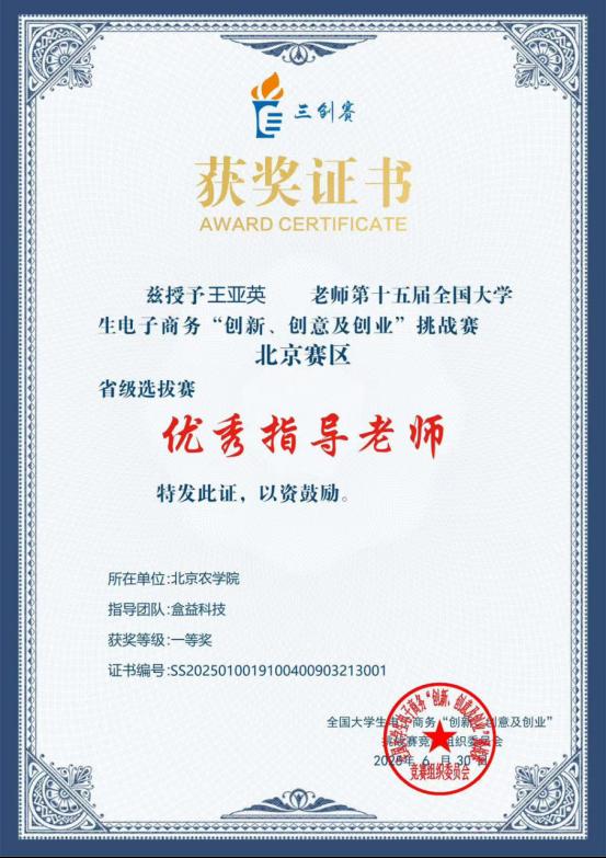 近日,第十五屆全國大學生電子商務“創新、創意及創業”挑戰賽(以下簡稱“三創賽”)北京市選拔賽落下帷幕,北京32所高校的3360支團隊參加了本次北京市選拔賽。由園林學院王亞英教授、經濟管理學院江晶副教授指導,園林學院研究生王景炫帶領的團隊“盒益科技”成功斬獲一等獎。