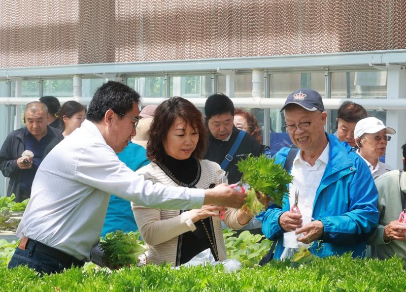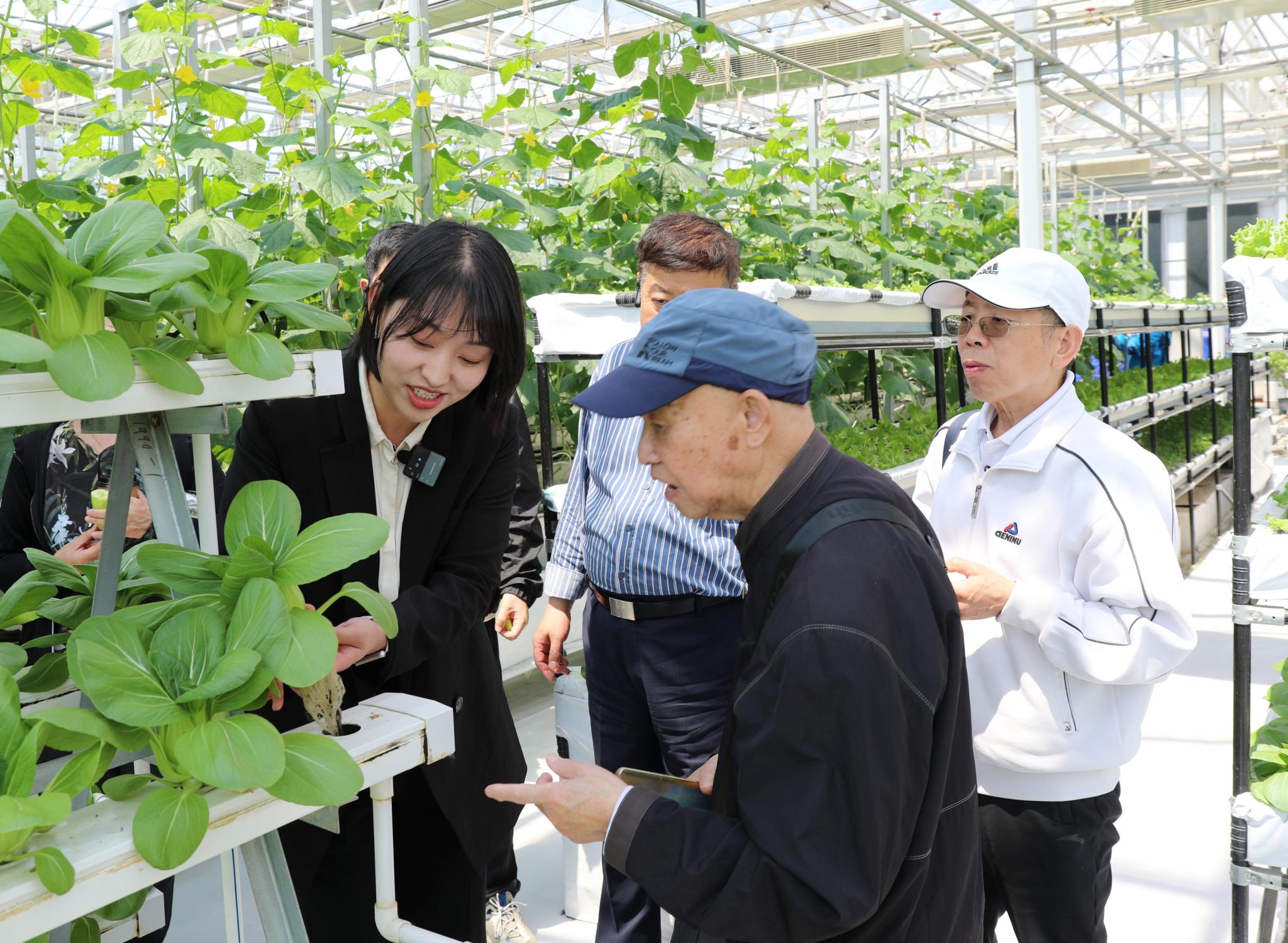在學(xué)校植物生產(chǎn)國家級實驗教學(xué)示范中心,老同志們現(xiàn)場參觀了智能連棟溫室,了解學(xué)校實踐教學(xué)做法、勞動教育特色和師生服務(wù)鄉(xiāng)村振興的成效。
