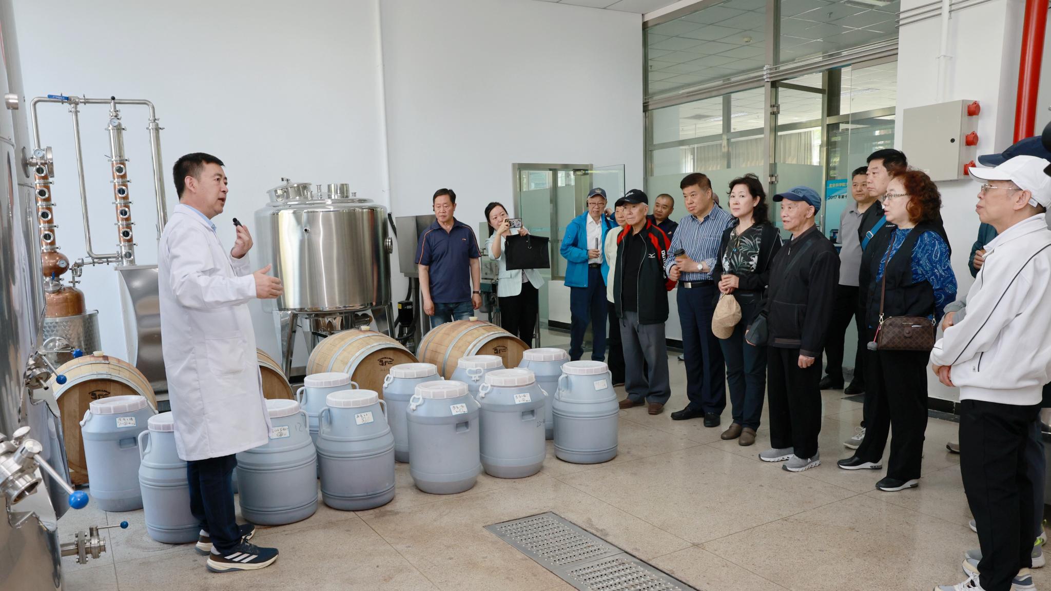 在食品加工與食品安全北京市實驗教學(xué)示范中心,老同志們先后到糧油加工實驗室、啤酒和葡萄酒釀造中試車間、益生菌發(fā)酵中試車間、果蔬加工及貯藏實驗室現(xiàn)場觀摩,詳細(xì)了解學(xué)校特色人才培養(yǎng)和專業(yè)建設(shè)情況。