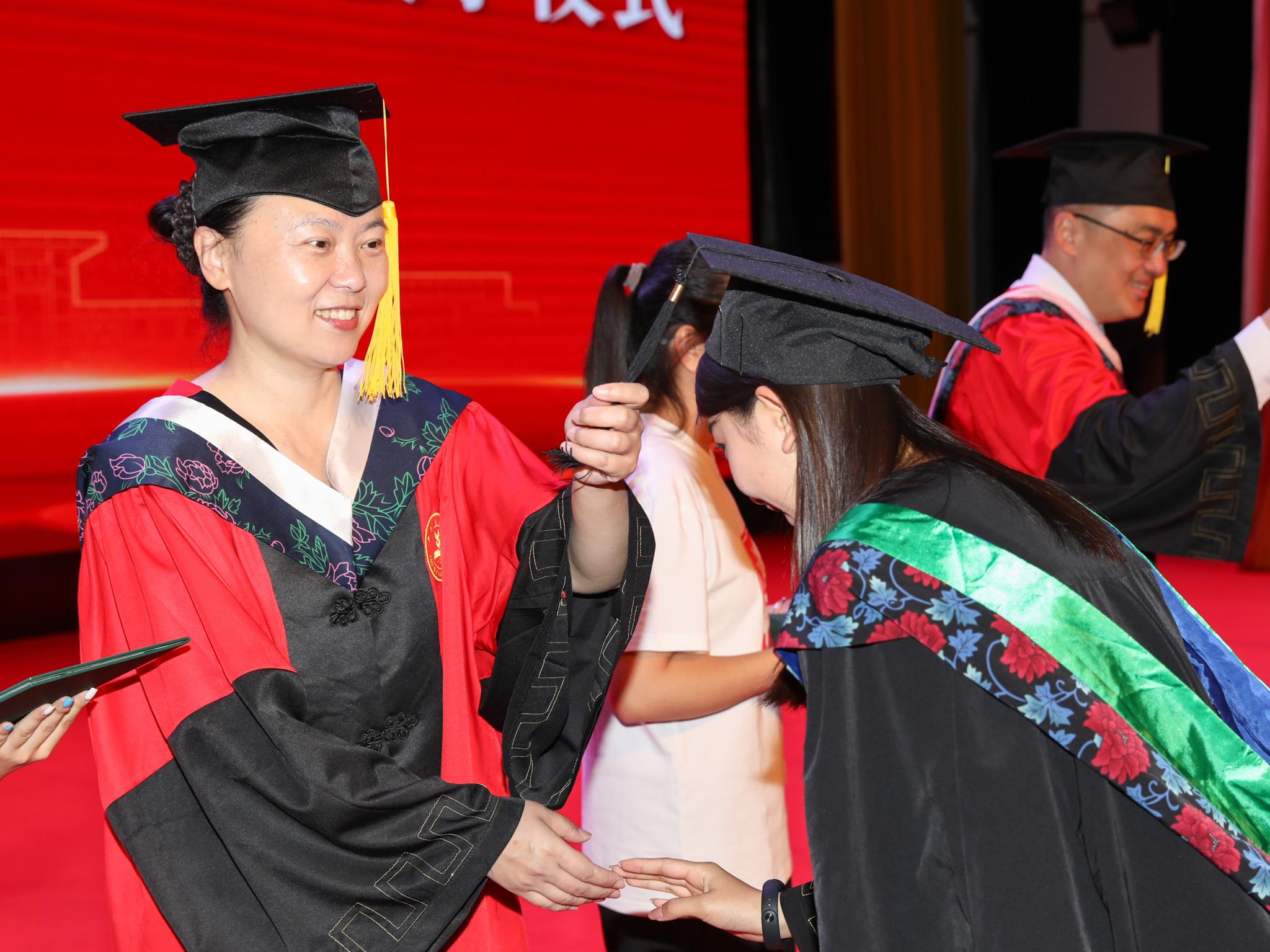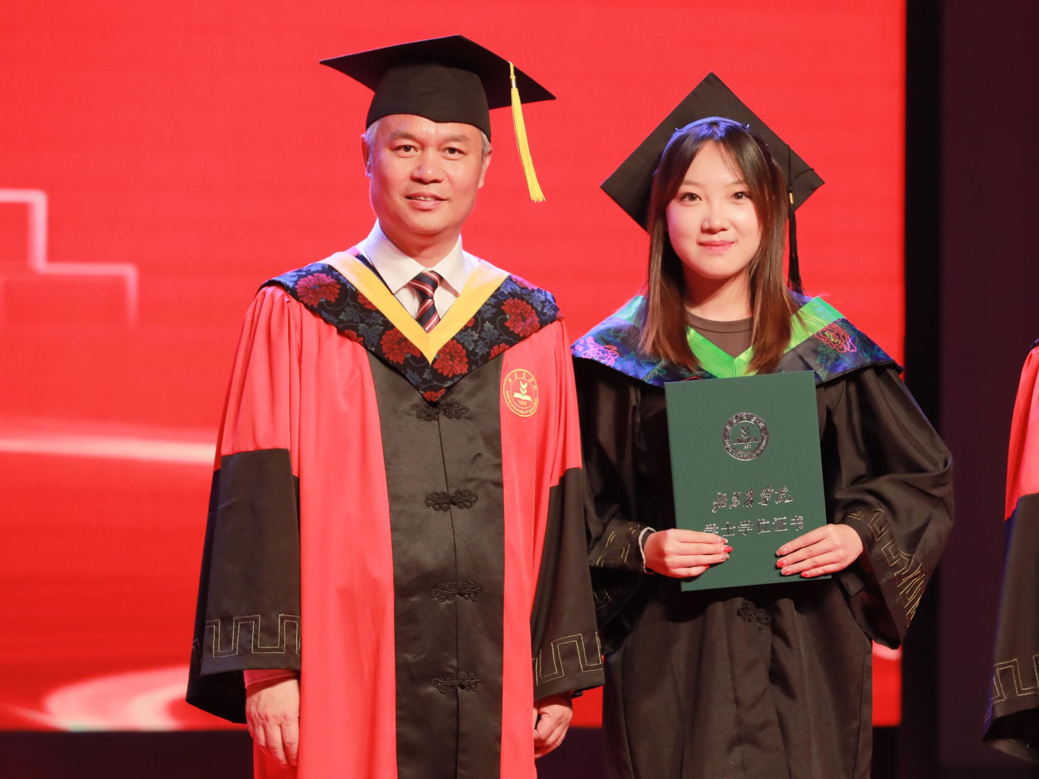 校領導為優秀畢業生代表頒發榮譽證書,希望同學們立強國興農大志向,做挺膺擔當奮斗者,在繪就強國建設和民族復興的壯美畫卷中綻放青春光彩、書寫人生華章。