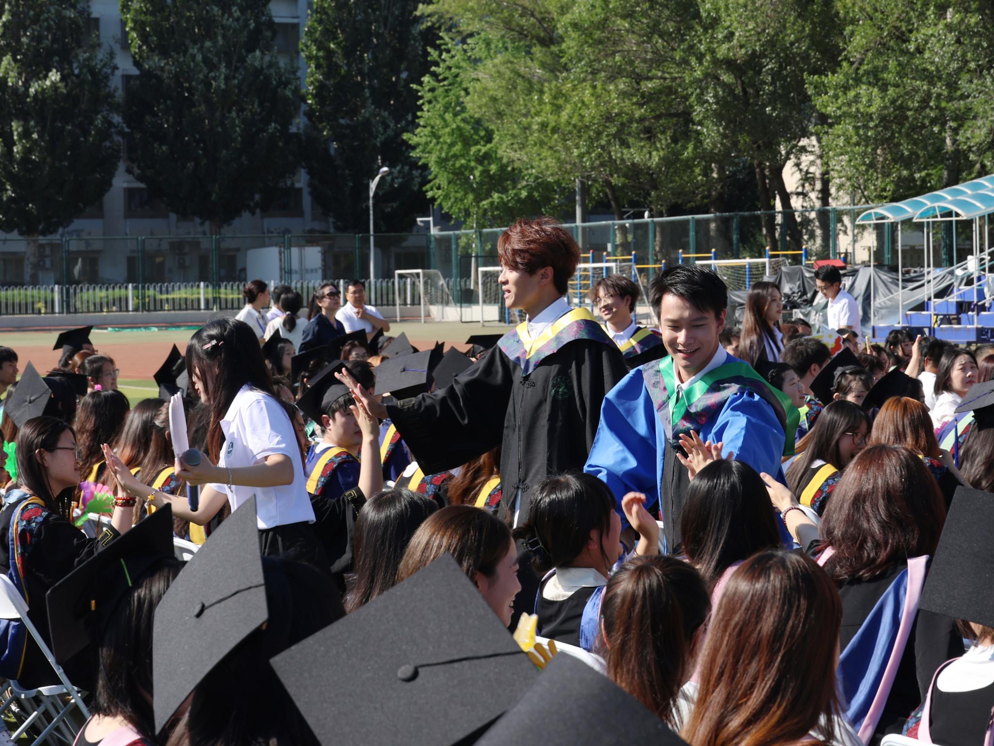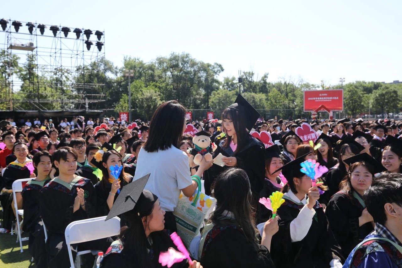 畢業生代表向家長、導師、班主任和輔導員、宿管阿姨、醫護人員、保安代表獻花,感謝家人、老師以及全體教職員工的關心支持、悉心培養和辛勤付出。