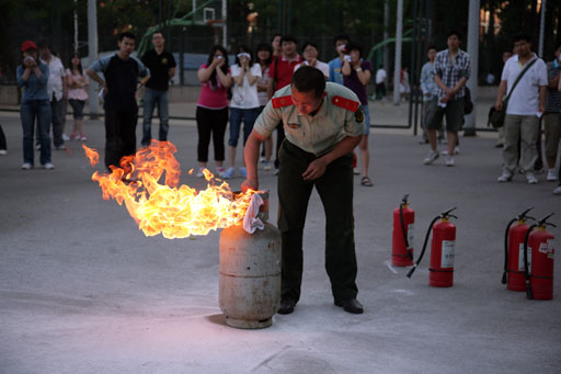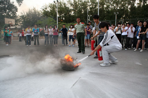 ,由黨委副書記高東任總指揮,我校學生處、后勤集團、保衛處及校醫院聯合頤和園消防中隊組織舉行了學生緊急疏散演習活動。此次演習活動共有消防安全講座、樓層疏散演習、火災現場逃生及火災撲救演習三項內容。800余名師生參與此次演習活動。黨委副書記高東在演習前要求,各相關部門要高度重視此次演習,要通過演習普及消防安全知識,提高師生防范能力。副校長姚允聰、紀委書記朱生利也親臨現場。