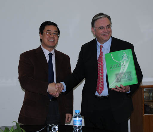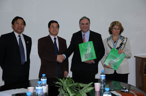 日前,法國普爾潘工程學院校長Roux Michel Mari Romain與該校國際交流部門負責人Lummerzheim Marie來我校訪問。校長王有年、副校長杜曉林會見了來賓。雙方就研究生教育進行了深入交流。動科系和食品系教師及有關負責人參加了交流會。
