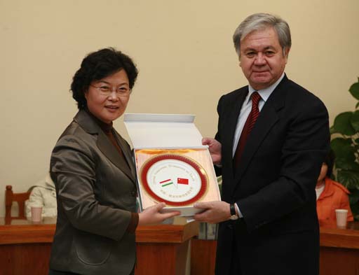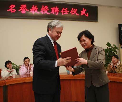 兩位外賓在答辭中,分別對我校授予他們名譽教授表示衷心感謝,并紛紛表示今后作為北京農學院的一員,非常愿意為學校的發展貢獻自己的力量。塔吉克斯坦駐華大使阿利莫夫特別談到,通過與北京農學院的交流與合作,中國與上海合作組織成員國,特別是與中亞國家相關農林科研院所和高校間的學術交流與人員往來,在相關科教領域雙方的交往進一步加深,這為發展更深層次的雙邊關系打下了雄厚的基礎。“中塔友誼杏樹林”與種植在塔吉克斯坦國立農業大學校園內的棗樹林,作為雙方友好交流的標志性合作項目,為開展其他領域的合作起到了很好的示范性作用。阿利莫夫大使代表塔吉克斯坦駐華使館向我校贈送了禮物和自己為北京奧運會所撰寫的博客文集。