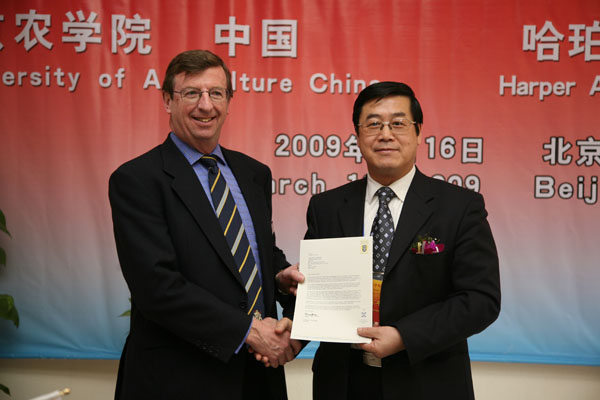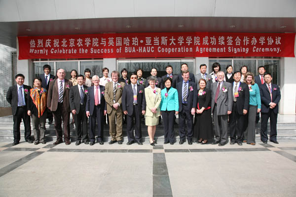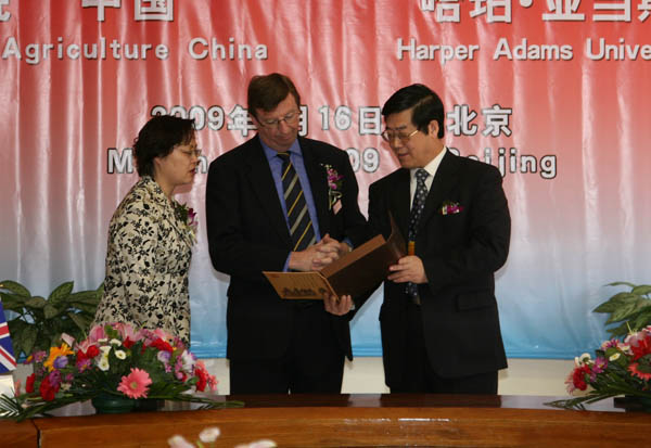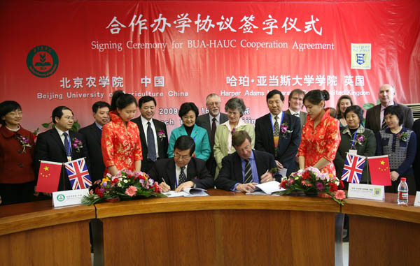 英國哈珀亞當斯大學學院代表團一行8人、學校有關職能部門的負責人出席了簽字儀式。