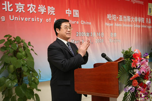 簽字儀式上,校長王有年首先代表全校師生員工對哈珀亞當斯大學學院一行的朋友表示熱烈的歡迎。在簡要介紹了學校的發展情況后,他說,兩校校際間的合作往來不斷增多,“