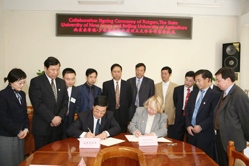 ,我校在B209隆重舉行了與美國羅格斯新澤西州州立大學“學者和學生交換計劃”的諒解備忘錄簽署儀式。
