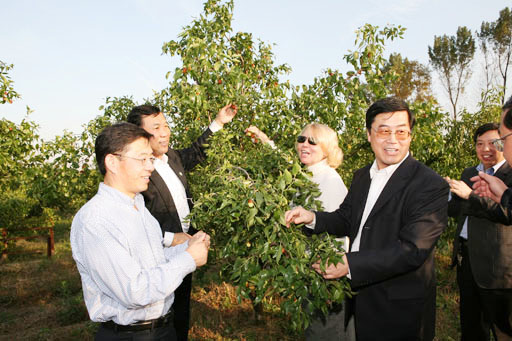 報告會后,院長王有年、副院長杜曉林陪同外賓參觀了小湯山現代農業科技示范園、觀光棗園和設施果樹等。