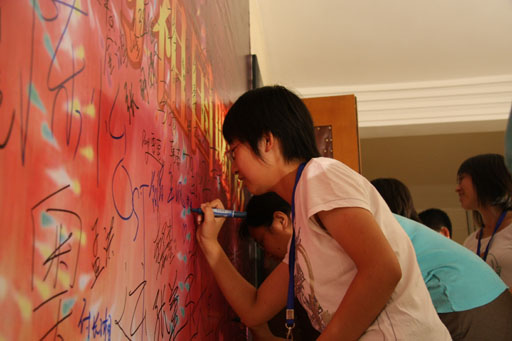 在各國代表團按順序出場時,看到每個國家的殘疾人代表都滿懷信心,心情激昂的走過主席臺,同學們都感到非常敬佩。一位同學向記者說到:“殘疾人士真的很不容易,我很佩服他們。他們沒有被生活所打倒,以積極樂觀的心態(tài)面對生活,積極地活躍在體育運動中。我相信這次殘奧會也會辦得很成功!”