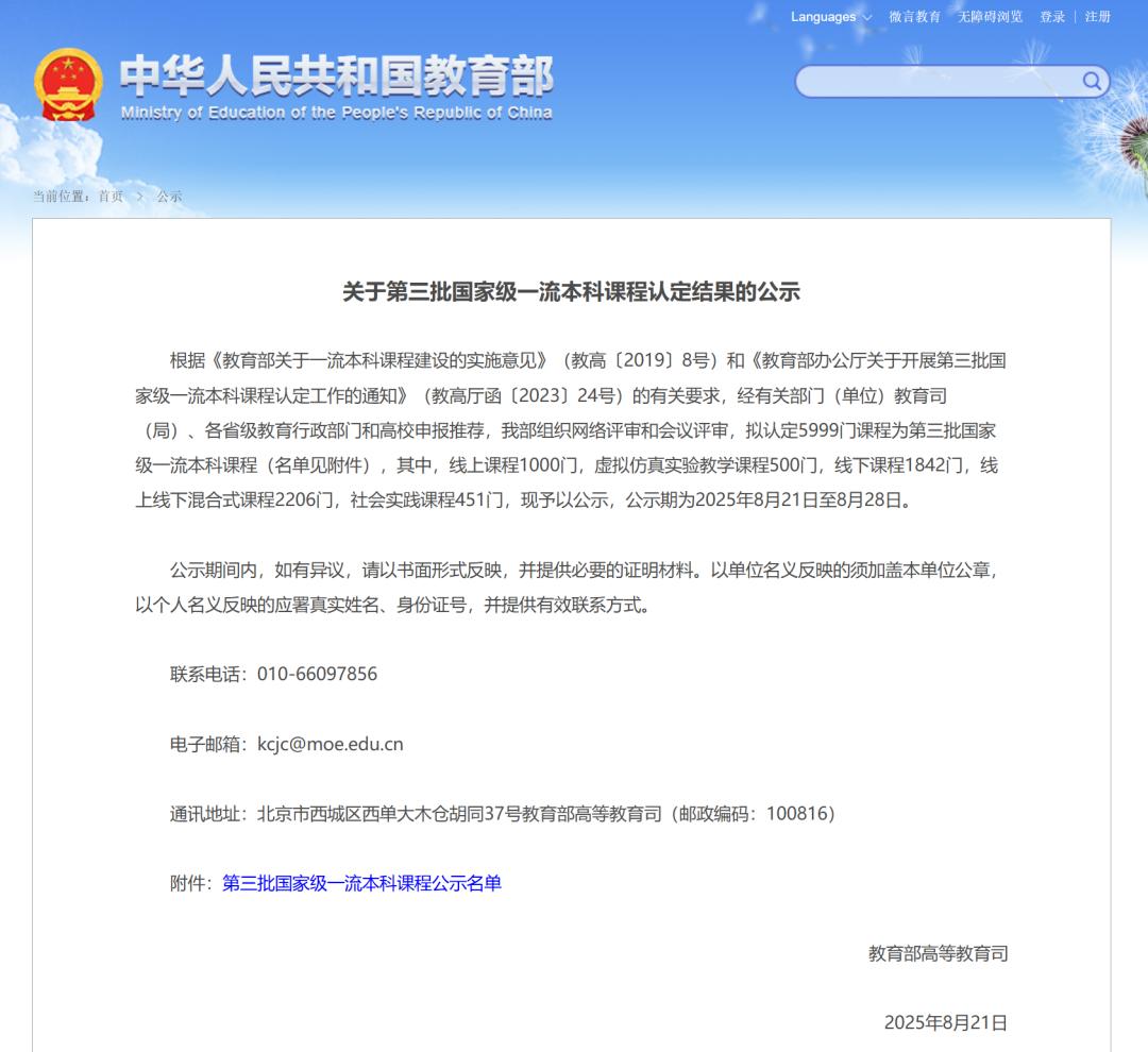 近日,教育部發布第三批國家級一流本科課程認定結果,我校《設施園藝學》《發酵工程》《園藝專業技能訓練》《獸醫公共衛生學》《作物昆蟲學》《農村統計與調查》6門課程成功入選,涵蓋了線上線下混合式一流課程、線下一流課程、社會實踐一流課程三個類別,實現新突破。