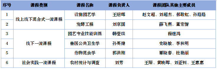 北京農學院第三批國家級一流本科課程名單