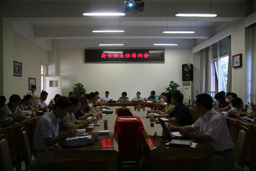,新生班主任培訓會在教學樓B座209召開,黨委副書記王曉霞出席會議,學生處韓寶平處長主持培訓,2008年新生的班主任參加了會議。