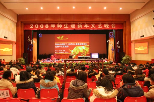 晚6:30分,由校工會、團委共同主辦,校歌舞協會、學生會協辦的“北京農學院2008年度教職工卡拉‘OK’大賽頒獎暨師生迎新年晚會”于大禮堂隆重舉行。黨委書記王慧敏,院長王有年,黨委副書記羅維忠、高東、高喜軍,副院長杜曉林、鄭一淳,紀委書記朱生利親臨本次晚會并為大賽獲獎個人和集體頒獎。各職能部處室負責人和各系部、二級學院、圖書館、各集團公司黨、政負責人,各單位工會主席、副主席等師生員工參加了晚會。