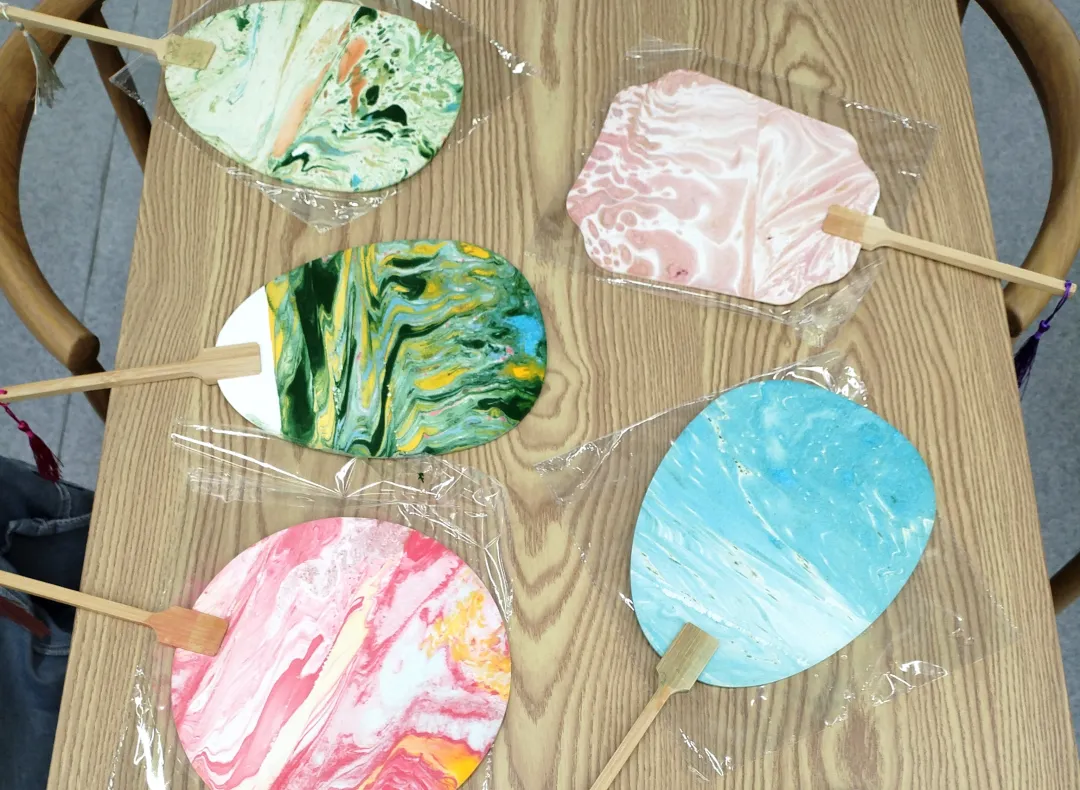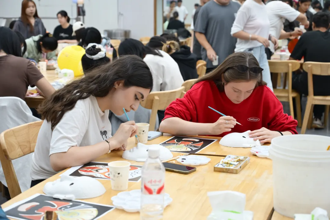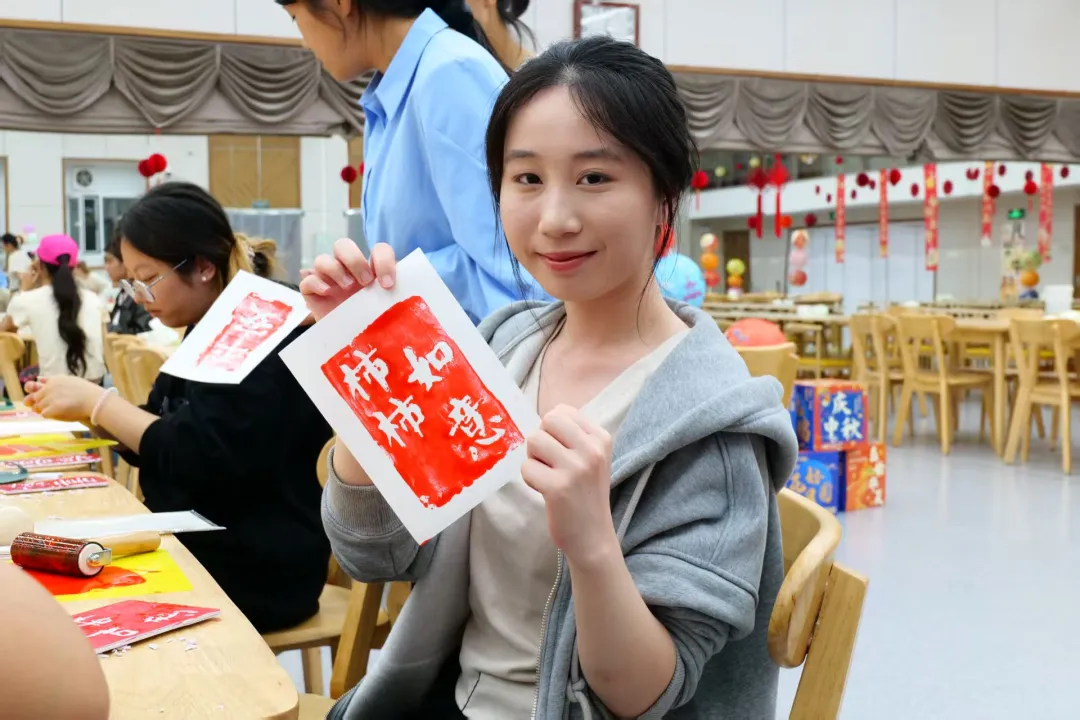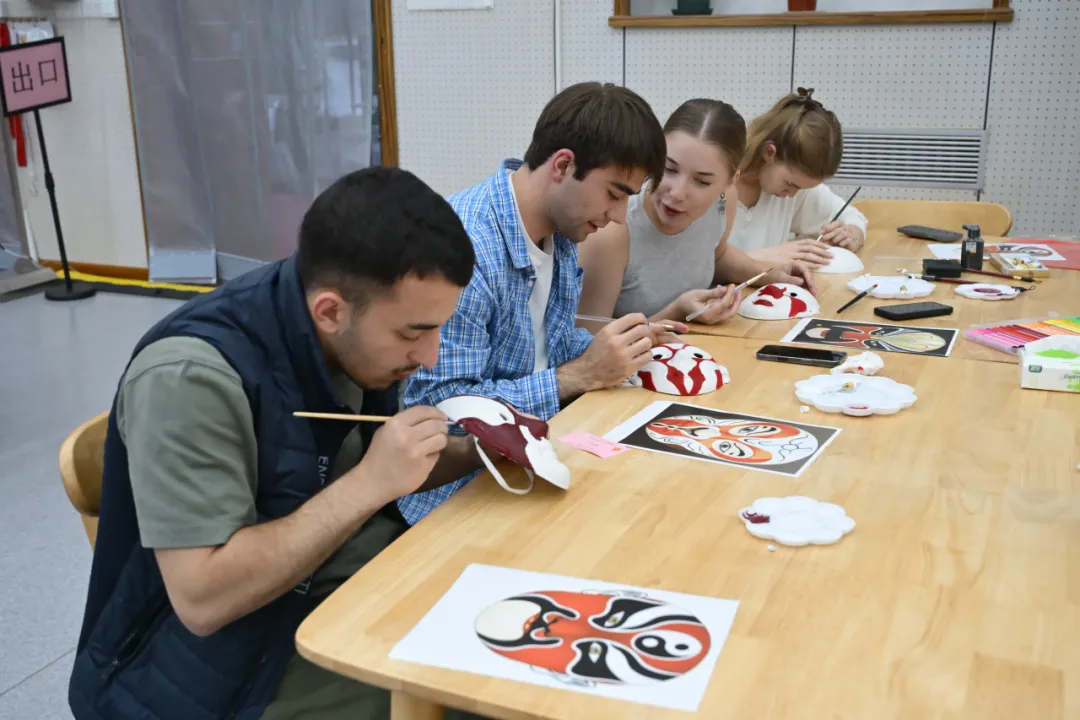 在傳統手工藝體驗環節,同學們或探索色彩的藝術,親手制作漆扇,或提筆勾勒,于素白臉譜上再現京劇風華;或體驗“古韻拓印”,將經典紋樣凝于紙端。靜品墨香雅趣,繪就栩栩圖案,寄托真摯祝福。