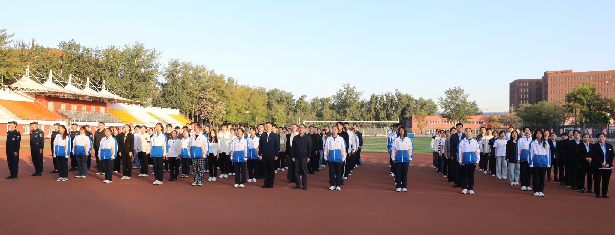 為大力弘揚和踐行,偉大愛國主義精神和偉大抗戰精神,激發全校師生的愛國熱情。10月1日7時,學校舉行“賡續抗戰精神,青春禮贊祖國”國慶節升國旗儀式。黨委書記趙鋒,黨委副書記鄭品石與在校生師生代表,共同見證五星紅旗冉冉升起的莊嚴時刻,共同慶祝新中國76周年華誕!