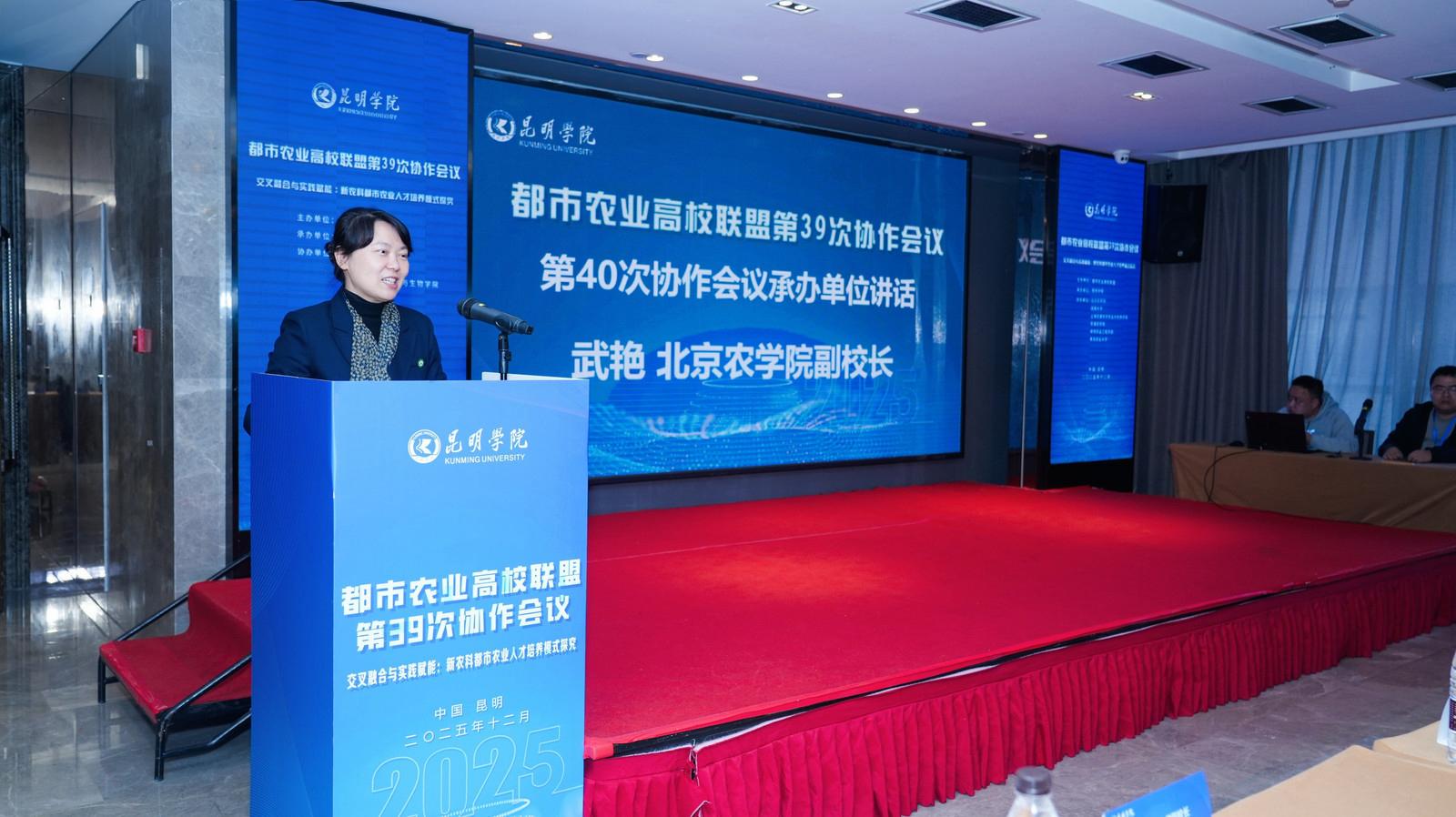 12月5日,都市農(nóng)業(yè)高校聯(lián)盟第39次協(xié)作會(huì)議在昆明召開(kāi)。來(lái)自北京農(nóng)學(xué)院、天津農(nóng)學(xué)院、西南大學(xué)、仲愷農(nóng)業(yè)工程學(xué)院、青島農(nóng)業(yè)大學(xué)、上海交通大學(xué)農(nóng)業(yè)與生物學(xué)院等聯(lián)盟成員單位代表齊聚一堂,通過(guò)專(zhuān)題報(bào)告、分組討論等形式,圍繞“新農(nóng)科都市農(nóng)業(yè)人才培養(yǎng)模式探究”進(jìn)行深入交流研討。我校黨委常委、副院長(zhǎng)武艷參會(huì)并以《新農(nóng)科都市農(nóng)業(yè)人才培養(yǎng)模式的北農(nóng)實(shí)踐》為題作報(bào)告。會(huì)議確定,都市農(nóng)業(yè)高校聯(lián)盟第40次協(xié)作會(huì)議將由北京農(nóng)學(xué)院承辦。