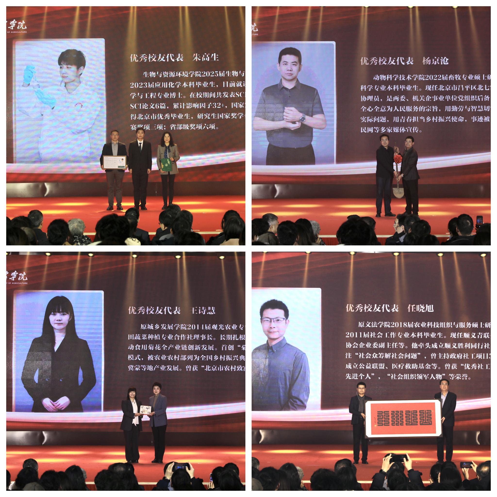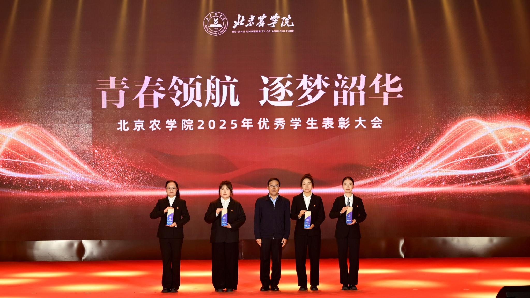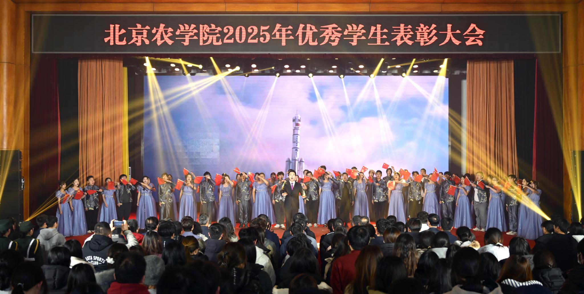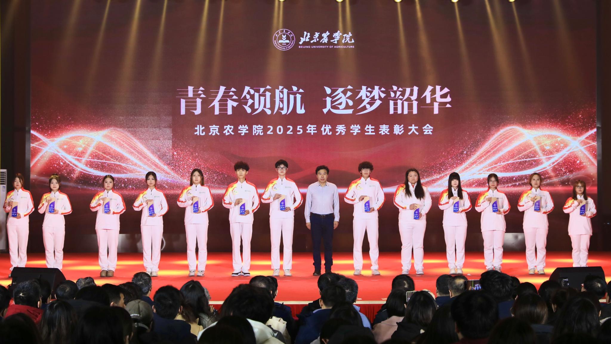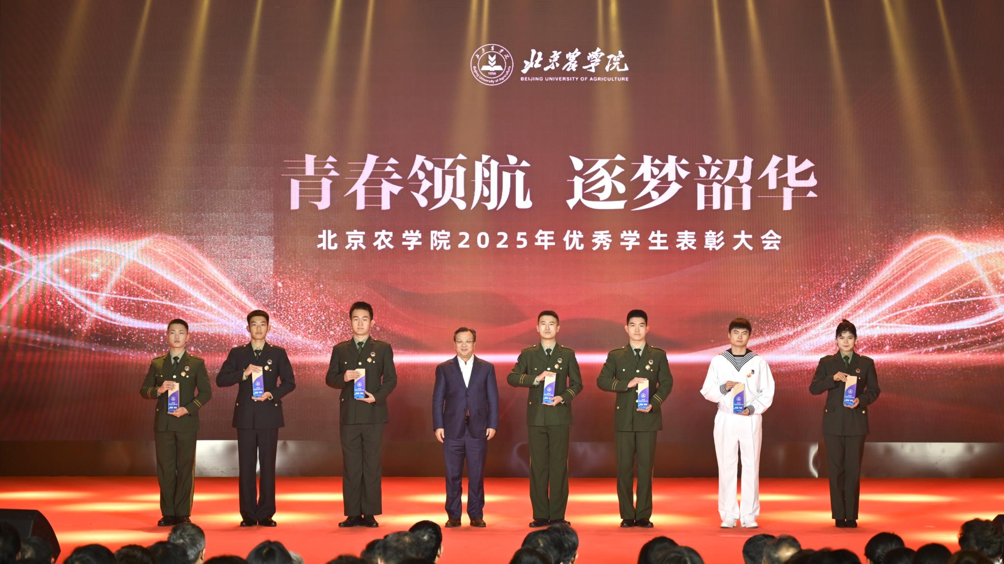 校領導分別為優秀畢業生代表、北京高校紅色“1+1”示范活動獲獎黨支部、北京農學院國旗班、“四有”優秀士兵代表、紀念中國人民抗日戰爭暨世界反法西斯戰爭勝利80周年大會廣場合唱團及民兵方隊代表頒獎,表彰堅守信仰、愛國奉獻的青春力量;為社會實踐優秀團隊與先進個人、心理健康類、體育類、文藝類獲獎學生代表頒獎,表彰知行合一、全面發展的奮進榜樣;為市級先進班集體、市級優秀學生干部、市級三好學生、國家獎學金獲得者代表、“挑戰杯”及各類科創競賽獲獎團隊代表頒獎,表彰勤學善思、勇于創新的先進典型。