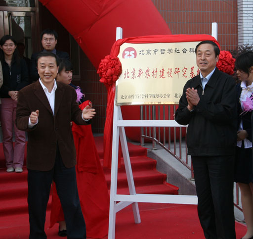 北京市農委副主任趙根武在講話時首先代表市農委對北京新農村建設研究基地的成立表示熱烈的祝賀。他指出北京市新農村建設研究基地的建立標志著我市新農村建設工作躍上了一個新的發展平臺。他希望學校能以此次揭牌為契機和動力,充分運用好這一陣地,不斷完善功能,發揮作用,本著服務京郊的理念,堅持自主創新,通過構建平臺,整合社會各界研究資源,在深入開展社會主義新農村建設研究基礎上,與市、區(縣)、村鎮等各級政府部門合作,與國內外相關研究機構與科研院所合作,推廣新農村建設研究成果,為政府決策服務,為郊區發展服務,充分發揮北京新農村建設思想庫的作用,加快北京郊區社會主義新農村建設的步伐。