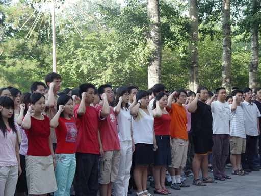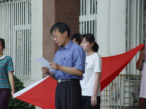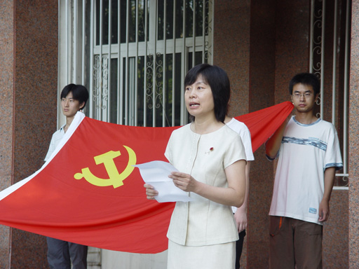 在莊嚴、肅穆的氣氛中,預備黨員、老學生黨員在鮮艷的黨旗下鄭重宣誓。