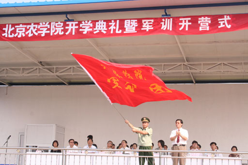 開學典禮之后的軍訓開營儀式上,學生處處長孫亞利老師介紹了北京農學院新生軍訓團的主要領導成員,院長王有年在熱烈的掌聲中向軍訓團授予了團旗,團長邵田向新生作了軍訓動員。最后,軍訓基地的官兵向與會領導和全體新生做了精彩的軍事科目表演。
