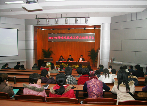 12月10日下午,我校在報告廳召開2007年畢業生就業工作總結表彰會。院長王有年、黨委副書記王曉霞、副院長姚允聰、學生處、團委、教務處、各系(學院)黨總支書記、主任、副主任、教研室主任、班主任和輔導員等50余人參加了會議。會議由黨委副書記王曉霞主持。