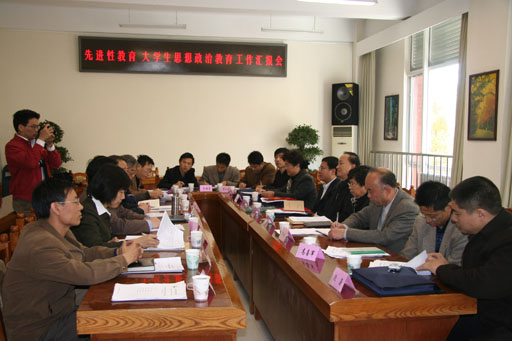 學校黨委書記孫堯東代表黨委向朱善璐同志及其他與會領導匯報了我校開展先進性教育和落實16號文件開展大學生思想政治教育工作的情況。