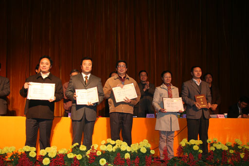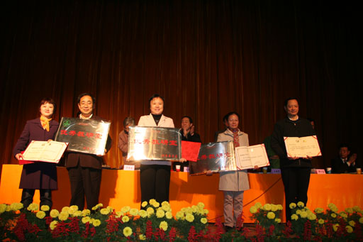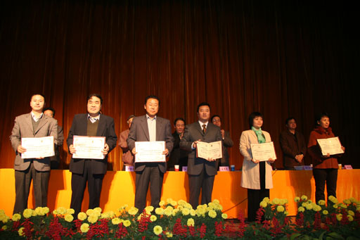 副院長鄭一淳宣讀了表彰決定。校領導為榮獲優秀教研室稱號的教研室、2004年北京高等教育精品教材主編、2004年北京市教育教學成果一等獎、二等獎和我校高等教育教學成果獎一等獎的獲得者、多媒體課件比賽一等獎的獲得者頒獎。(獲獎名單附后)