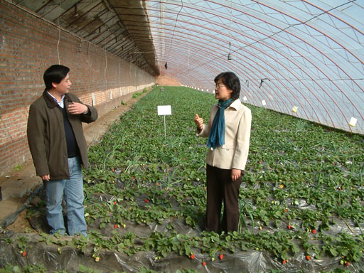 在聽(tīng)完基本情況介紹和實(shí)地考察后,王慧敏指出,興壽鎮(zhèn)作為我校服務(wù)京郊新農(nóng)村建設(shè)六大基地之一,學(xué)校應(yīng)給予更多的關(guān)心與支持。在麥莊村草莓種植專業(yè)村建設(shè)中,學(xué)校將發(fā)揮技術(shù)優(yōu)勢(shì)和多學(xué)科優(yōu)勢(shì),在種植技術(shù)、無(wú)公害和有機(jī)草莓生產(chǎn)等方面下功夫,還將選派植保教師配合工作,加強(qiáng)對(duì)病蟲(chóng)害防治技術(shù)的指導(dǎo),提高總體管理水平,進(jìn)一步增加農(nóng)民收入。王書(shū)記代表學(xué)校感謝董清華同志的辛勤工作,并對(duì)其在服務(wù)京郊新農(nóng)村建設(shè)中取得的成績(jī)表示祝賀。