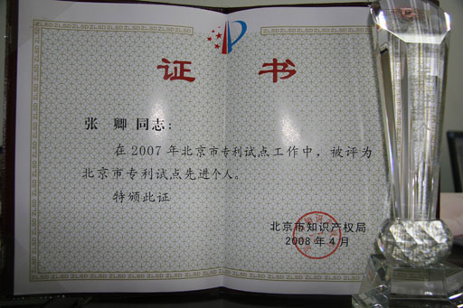 北京市和昌平區知識產權局的共同支持下,我校2007年度北京市專利試點工作成績顯著。經昌平區知識產權局推薦,北京市知識產權局評審,我校在2007年度北京市專利試點工作中成績顯著,考核合格。