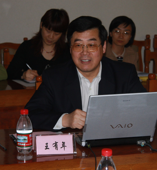 院長王有年向王孝東主任一行匯報了學校近年來的發展狀況,并重點介紹了學校在服務首都新農村建設方面開展的特色工作、取得的突出成績和貢獻,同時希望能夠在加強信息交流、經費劃撥以及人才培養等方面得到農委的關心和支持。