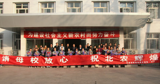 送行的同學?!按骞佟敝砉ぷ黜樌?、事業有突破,希望他們能多與學校朋友聯系、交流,為共同實現北農輝煌努力。