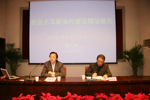 為了使我校干部和教師深入了解建設(shè)社會主義新農(nóng)村的重大意義,更好地指導(dǎo)今后的工作, 3月23日下午 ,學(xué)校黨委特別邀請到了國務(wù)院研究室常務(wù)副主任韓長賦同志來校做了專題輔導(dǎo)報告。黨委書記孫堯東同志主持了報告會。