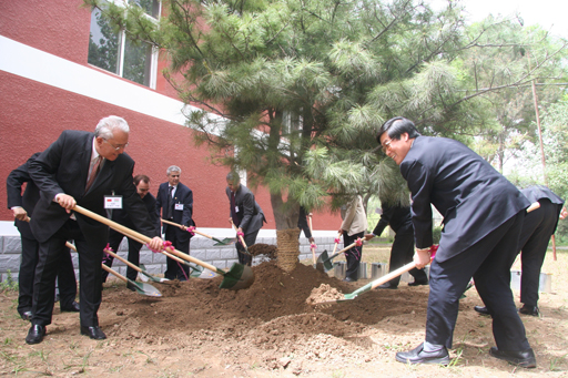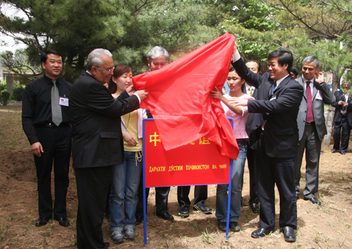 5月17日,中塔友誼松樹栽種儀式在我校舉行。出席上海合作組織峰會的塔吉克斯坦共和國外交部長塔· 納扎羅夫院士、塔吉克斯坦共和國駐華大使拉· 阿利莫夫、塔國外交部亞非司長納·納扎羅夫、塔國駐華大使館公使銜參贊胡· 霍利克納扎羅夫等外賓參加了活動。