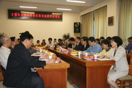 在學術交流期間,與會專家踴躍發言,暢談都市型現代果業發展的思路與見解。原中國農業技術推廣協會會長、原農業部常務副部長教授,院長王有年、原中國農業科學院副院長教授,農業部李麗同志在論壇上就科教興農、農村合作組織的生產經營模式、都市型現代果業發展等問題發表了重要言論。