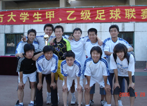 經(jīng)過為期一個月緊張激烈的角逐,2006年“奧士博”杯北京市大學生男子足球乙級聯(lián)賽于五月28日落下帷幕。參加此次聯(lián)賽的隊伍包括中國政法大學、北京郵電大學等12支大學代表隊。我校男子足球隊經(jīng)過5場激烈比賽,最終以4:3的成績打敗中國政法大學,獲得聯(lián)賽冠軍,為學校50華誕獻上一份厚禮。