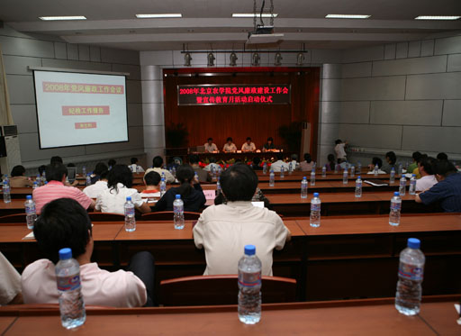 5月29日下午,我校2008年黨風廉政建設工作會議暨黨風廉政建設宣傳教育月活動啟動儀式舉行。會議由院長王有年主持,在校的全體校領導、中層以上干部、校紀委委員、總支委員、黨支部書記及后勤、科技服務集團中心主任等參加了這次大會。