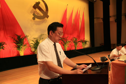 他首先代表學校黨委向全體共產黨員致以節日的問候!向受到北京市委表彰的先進基層黨組織——植物科學技術系黨總支、向在鞏固保持共產黨員先進性教育活動成果中獲得理論成果獎、實踐成果獎和制度成果獎的單位和個人表示熱烈的祝賀!向工作在教學、科研、管理與服務第一線的廣大教職員工表示親切的問候和衷心的感謝!