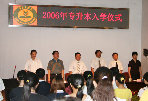 6月30日上午,我校舉行2006年 “專升本”入學儀式。大會由范雙喜處長主持,副院長杜曉林、學生處長孫亞利、宣傳部部長程春生、教務處副處長楊劍平、沈文華出席了入學儀式,并為每位專升本學生發放了錄取通知書。